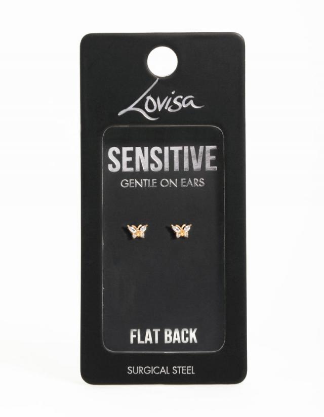 Lovisa Flat Back Studs | JEWELLERY Gold Plated Surgical Steel Cubic Zirconia Butterfly Flat Back Earrings