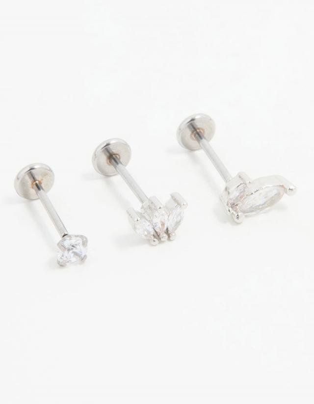 Lovisa Flat Back Studs | JEWELLERY Surgical Steel Fan Double Cubic Zirconia Flat Back Studs 3-Pack