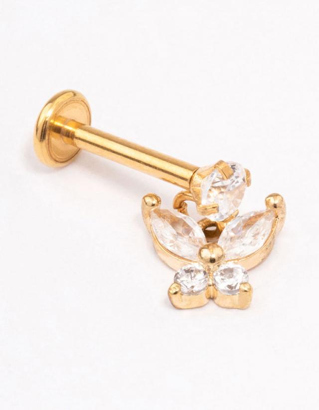 Lovisa Flat Back Studs | JEWELLERY Gold Plated Titanium Cubic Zirconia Butterfly Drop Flat Back