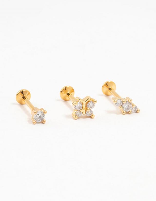 Lovisa Flat Back Studs | JEWELLERY Gold Titanium Cubic Zirconia Butterfly Flat Back Pack